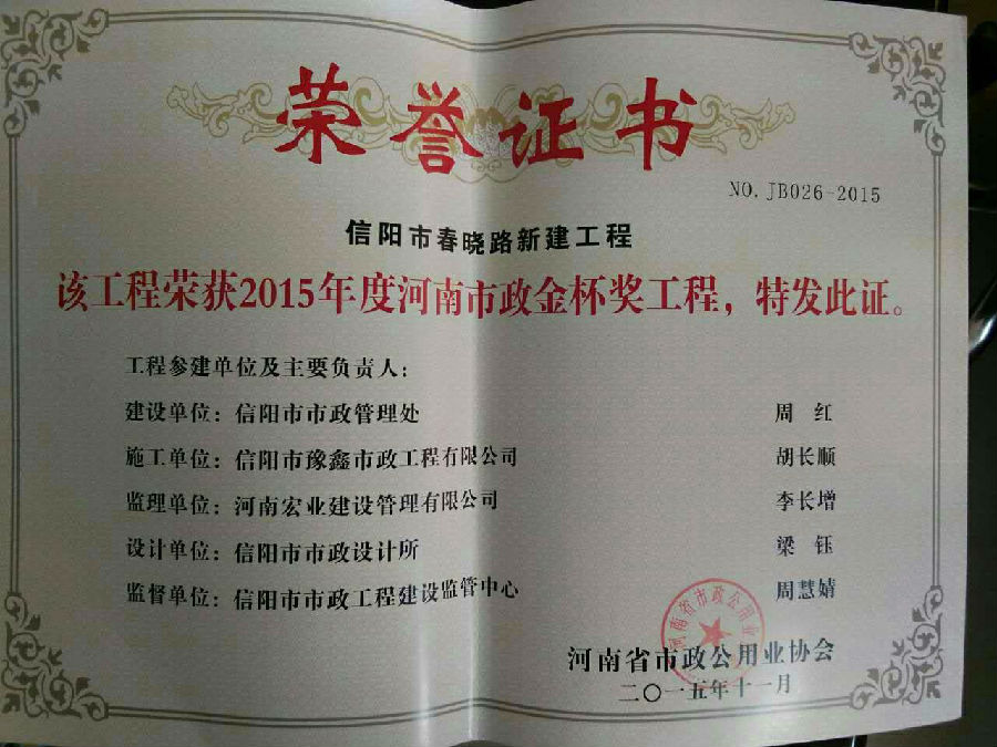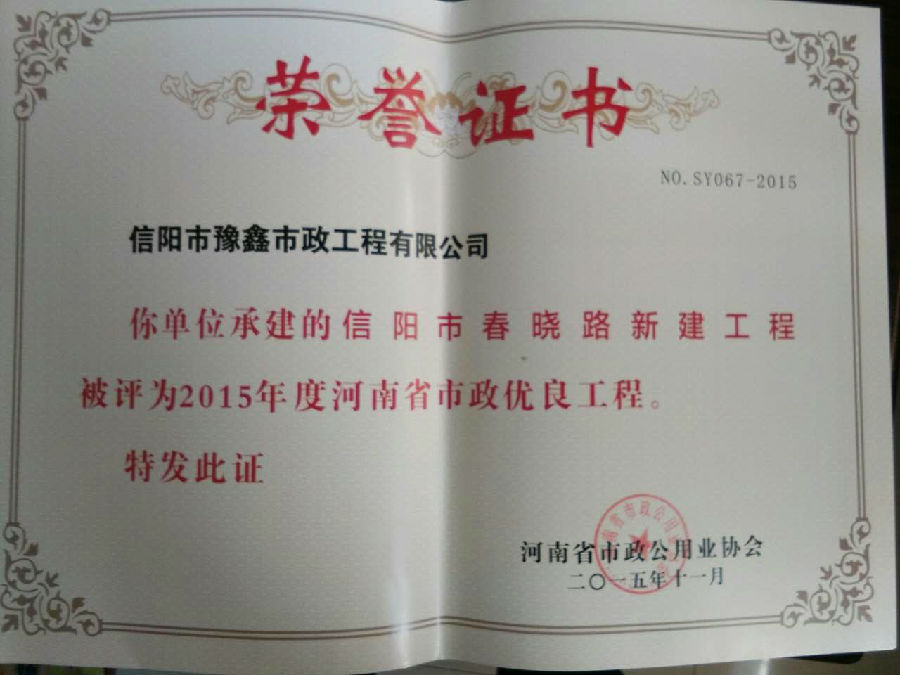 好風(fēng)憑借力,送我上青云。近年來,公司積極參與城市市政基礎(chǔ)設(shè)施建設(shè)施工,積極參與市場競爭,先后承擔(dān)施工了市政府重點(diǎn)工程南京路道路改造工程、春曉路道路改造工程,東方紅大道道路改造工程、龍江東路新建工程等重點(diǎn)民生工程,其中南京路道路改造工程被省建設(shè)廳評(píng)為“中州杯”, 春曉路和東方紅大道道路改造工程被省建設(shè)廳評(píng)為“省優(yōu)工程”,成為城區(qū)一道道亮麗的風(fēng)景線。參與施工了市典范小區(qū)“臺(tái)北城上城”、“恒大名都”以及師范學(xué)院、職業(yè)技術(shù)學(xué)院、交警支隊(duì)和軍區(qū)道路工程,參與施工了雞公山管理區(qū)、南灣管理區(qū)、明港鎮(zhèn)和羅山縣等部分道路小區(qū)工程施工,累計(jì)大小各類施工工程三百余項(xiàng),企業(yè)影響力不斷擴(kuò)大、輻射力不斷增強(qiáng),市場份額不斷提高,企業(yè)信譽(yù)不斷彰顯,為信陽城市建設(shè)做出了積極貢獻(xiàn),為企業(yè)的可持續(xù)發(fā)展插上了騰飛的翅膀。